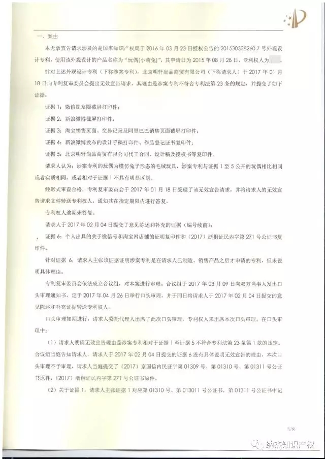 我代理北京明轩尚品商贸有限公司就外观设计专利201530328260.7向专利复审委员会提出的无效申请,从2017年1月18日期至2017年7月5日历时5个半月,终于等到了有利于我的委托人的无效决定。这其间的感悟颇有必要记录下来,一方面提醒自己未来的态度,另一方面有利于同行少走弯路。本文以提出问题为主,毕竟法律工作也可以称之为遗憾的艺术,谁最牛取决于谁能够在所做的法律案件中总结教训,总结的越多,就最牛。在问题之后是本案中我的值得固化的经验。