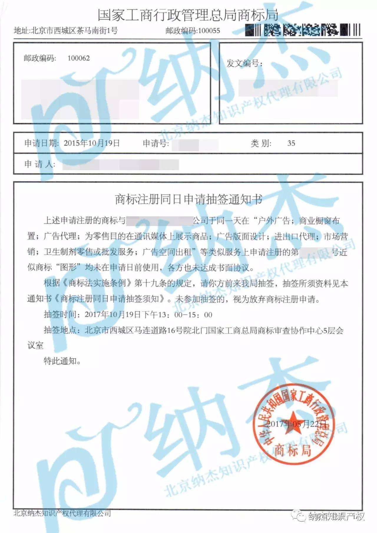 商标注册同日申请怎么办?商标注册同日申请抽签通知书》给你答案