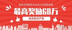 最高奖励60万,浙江省金华市高新技术企业认定奖励政策汇总! 2019-07-01 本文为大家整理了浙江省金华市各市区的高新技术企业认定奖励政策,本文的目的只是为了传递信息,如需了解详细内容,请以当地最新发布政策为主。 查看详细