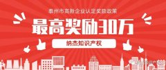 最高奖励30万元,江苏省泰州市高新技术企业认定奖励政策汇总! 2019-07-09 本文为大家整理了江苏省泰州市各市区的高新技术企业认定奖励政策,本文的目的只是为了传递信息,如需了解详细内容,请以当地最新发布政策为主。 查看详细