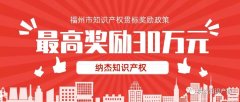- 最高奖励30万,福建省福州市知识产权贯标奖励政策汇总! 2019-07-19 本文为大家整理了福建省福州市各市区的知识产权贯标奖励政策,本文的目的只是为了传递信息,如需了解详细内容,请以当地最新发布政策为主。 查看详细