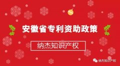 - 【政策干货】安徽省16个市知识产权专利申请资助标准 2017-12-15 这是纳杰知识产权专利资助政策汇总第五期,本期为大家汇总的是安徽省的专利资助政策,下面我们正式开始。 查看详细